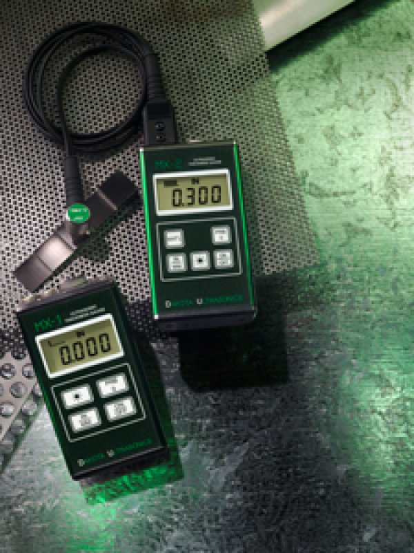 Máy đo chiều dày kim loại, model MX-1 (USA) là model cơ bản và đơn giản nhất. Dải đo: 0.63 - 500 mm; Phân giải: 0.01 mm. Ứng dụng: kiểm soát ăn mòn đường ống, bồn bể, nồi hơi...trong quá trình chế tạo và sử dụng